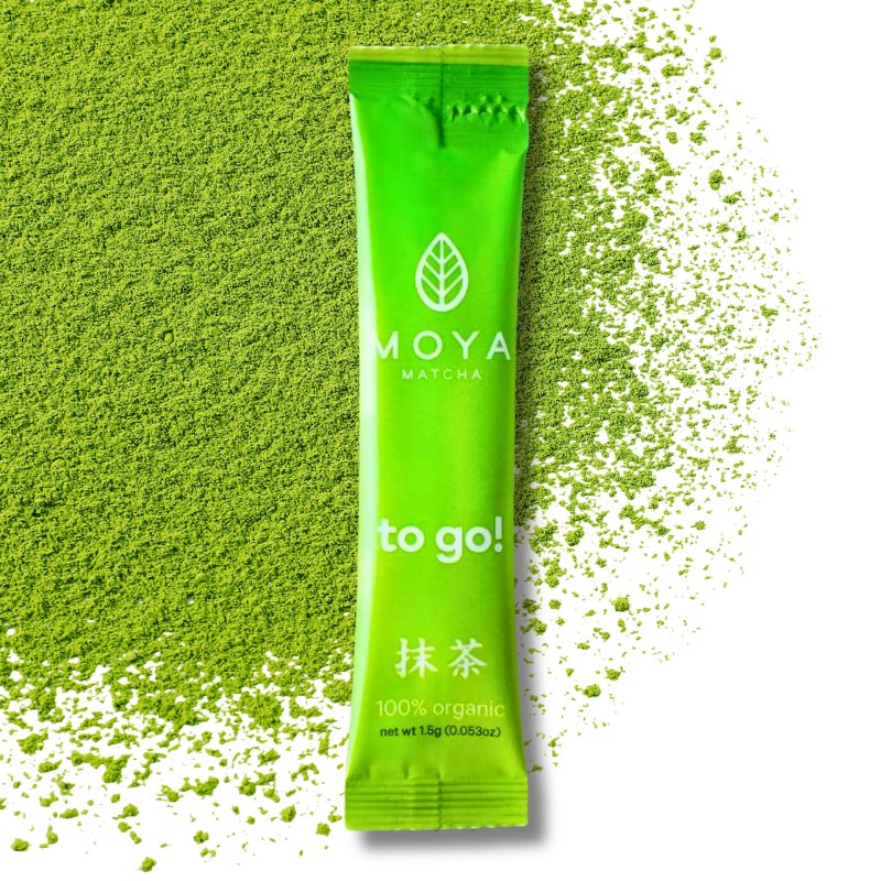 Onze Matcha Sachets van Moya bevatten pure, duurzaam geteelde matcha in een handige portieverpakking van 1,5 gram.